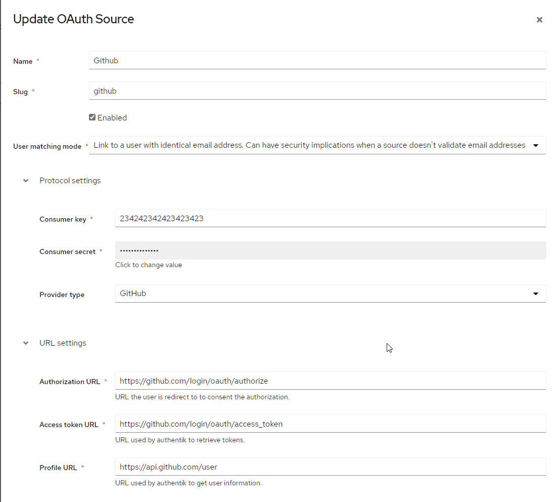 - Slug: github (If you choose a different slug the URLs will need to be updated to reflect the change)